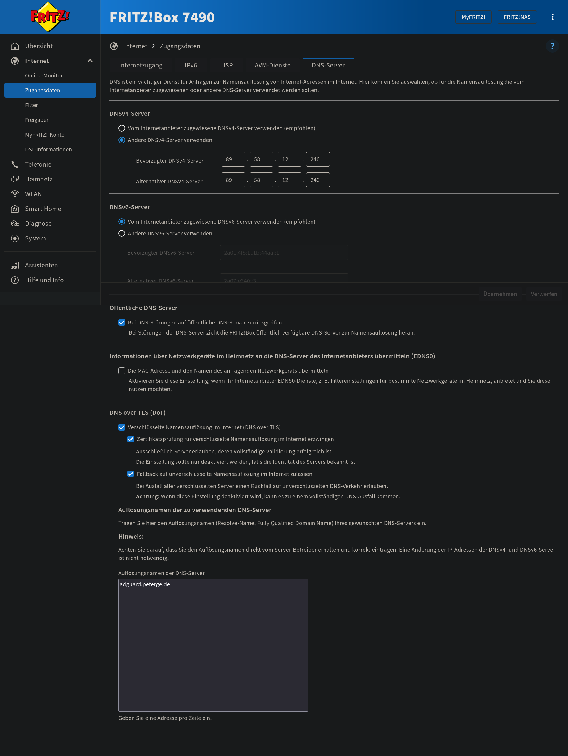 So I set up a publicly reachable instance of AdGuard Home, and after spending some time with ports and certificates I was done and started using it in my FRITZ!Box: